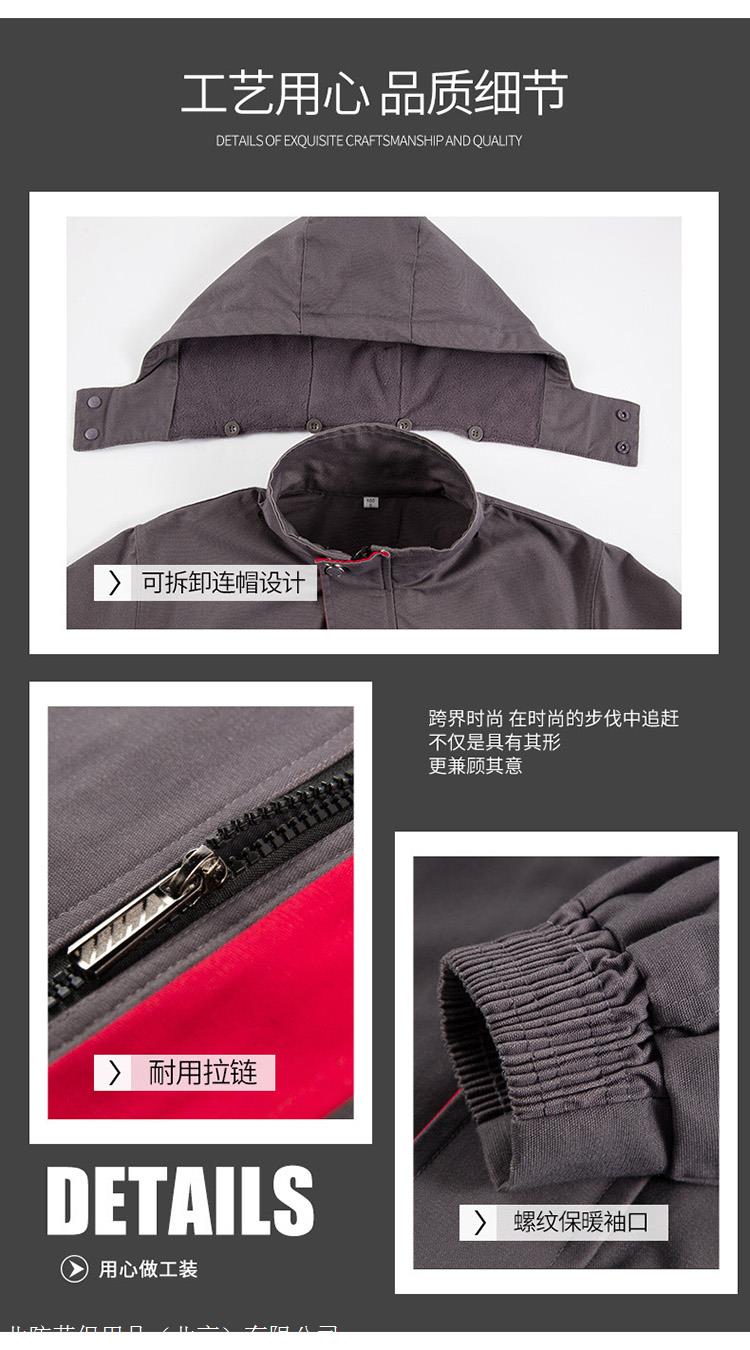 产品布料:全过程水洗和拉绒帆布,衬里是羊毛,产品可拆毁,可单独穿戴,前后反光条,